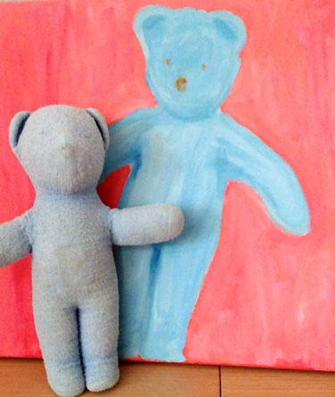 Als ich vor 14 Jahren mit meinem Sohn schwanger war, habe ich angefangen, die Schmusetiere und die Spieluhr, die wir schon für ihn besorgt hatten, nebeneinander auf eine große Leinwand zu malen,